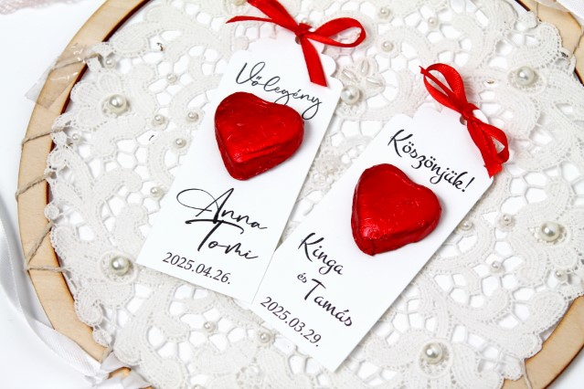 és az esküvőtök dátuma díszíti. A csokoládé köszönetajándék évek óta az egyik legnagyobb köszönetajándék sláger – népszerűsége töretlen,